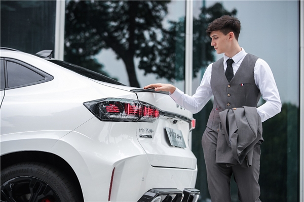 而要想圈粉这样的“后浪”精英,显然还得靠实力说话。那么,VV7 GT brabus | automotive的表现如何呢?在我看来不输百万豪车。就以它车身使用的大量碳钎维材质为例,妥妥的百万豪车用料,不仅能够提升车型豪华质感,并且可以带来优异轻量化属性和空气动力特性。除了原材料的使用,最能体现豪车“豪”属性的,还要数设计。VV7 GT brabus | automotive采用德国定制骑士设计,前脸借鉴骑士铠元素,前杠造型如甲片般层层叠加;前后轮眉加宽套件,灵感取自利刃剑鞘;车尾造型则来自御风战马,“型势”俱佳,运动之势尽显。另外,车尾的贯通式黑耀晶体尾灯,则像是“信仰之光”,是骑士精神的寄托之处。