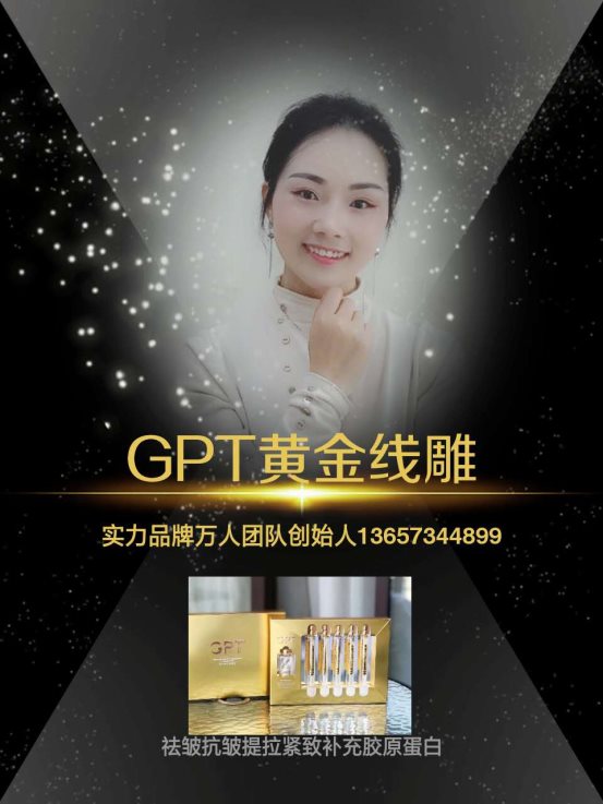 爱美是女人的天性,拥有持久靓丽的容颜,更是女人一辈子追求的事情。如果有一款产品能够让女人重新拥有年轻的容颜,想必很多女性都会愿意去尝试。正好,GPT黄金线雕全新上线,一下子就引领了美容护肤圈的新风向。那么,GPT黄金线雕多少钱?效果如何呢?GPT黄金线雕代理流程怎么样?跟我一起来了解一下。GPT黄金线雕品牌联合创始人段段 微信:13657344899