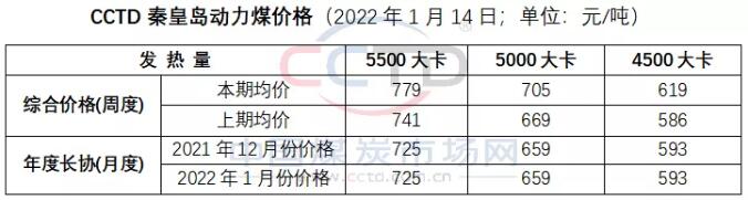 本期CCTD中国煤炭市场网权威标志煤种价格体系核心视点:本报告期(2022年1月8日至1月14日;下同),“CCTD秦皇岛动力煤价格”的周度均价回升,现货价格继续反弹。