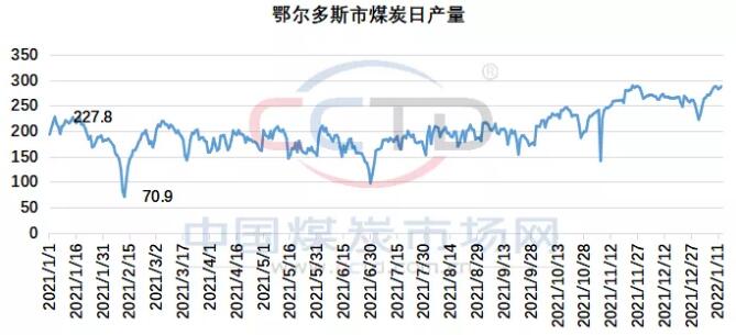 煤炭供应重回峰值。根据CCTD中国煤炭市场网监测的数据显示,1月13日当周,鄂尔多斯日均产量284万吨/日,周环比提高30万吨/日;比12月份的均值也提高了22万吨/日。产量再次回到280万吨以上,主要是因为采购好转。一方面,为了保障冬奥会期间用煤用电安全,终端传统的春节前补库任务升级,特别是京津冀鲁豫蒙辽等冬奥会能源电力供应保障重点地区相关电厂库存要在1月底前提高到30天及以上。另一方面,为弥补冬奥会期间停产影响的生产,部分水泥化工等非电终端出现赶工现象,对于煤炭等原材料的需求也得到释放。